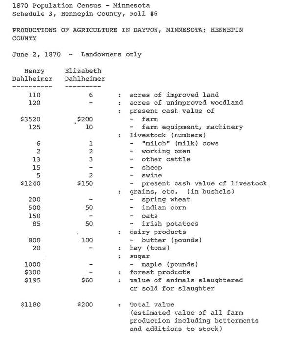 of agricultural production for Henry and Elizabeth (Valentine's widow), as